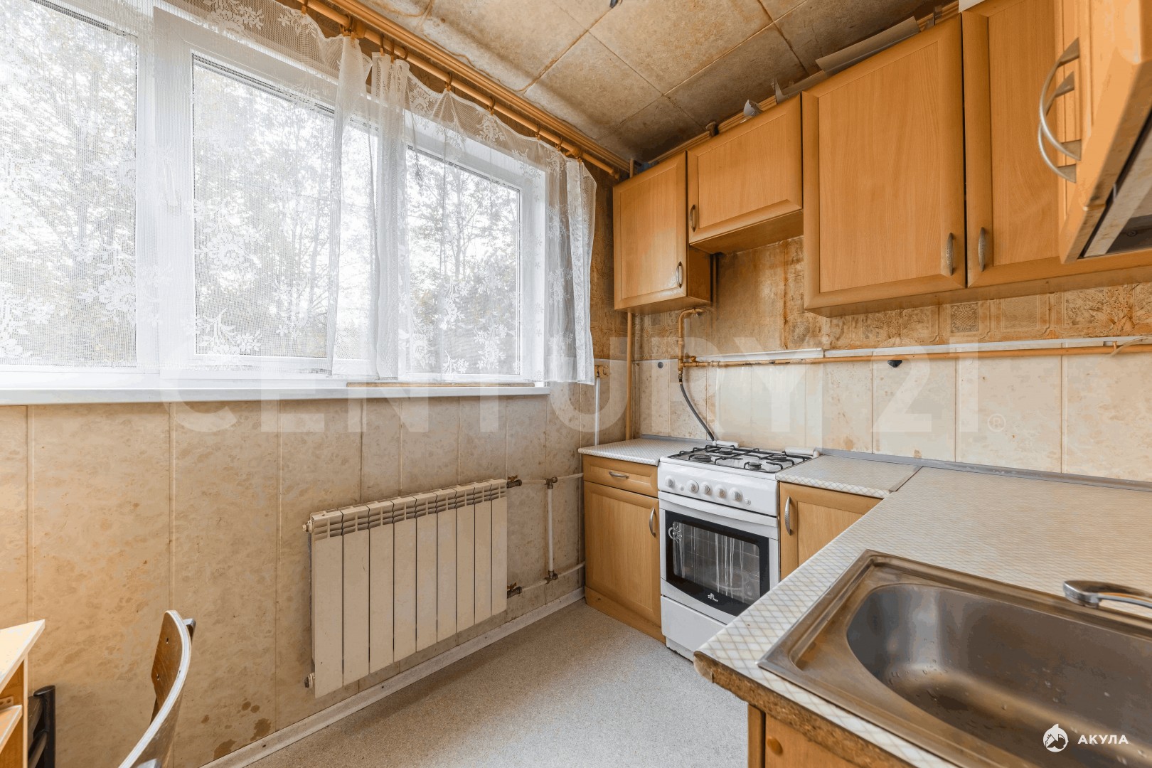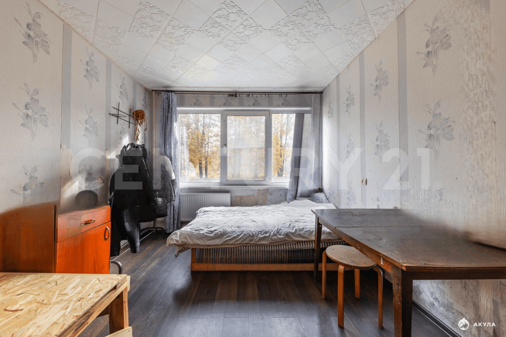 Окна выходят на тихую спокойную зеленую зону.
