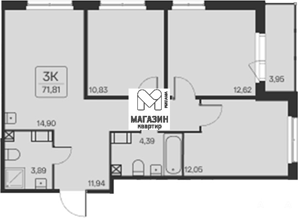 Предлагается к продаже 3-комнатная квартира в прекрасном ЖК.