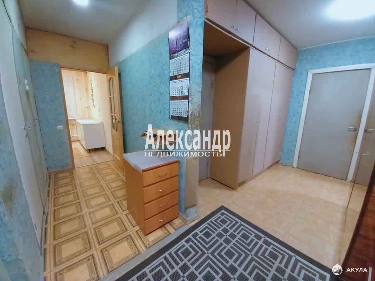 В прихожей есть просторные встроенные шкафы для дополнительного хранения.