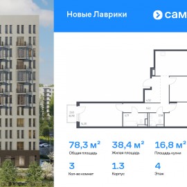 Строим кварталы для жизни с заботой о будущем. Предлагается 3-комнатная квартира комфорт-класса 78, 29 кв.м в корпусе 1.3 на 4 этаже, в ЖК «Новые Лаврики» Квартира с чистовой отделкой. Доступность дополнительных опций уточняйте у застройщика. Приобрести квартиру возможно по...