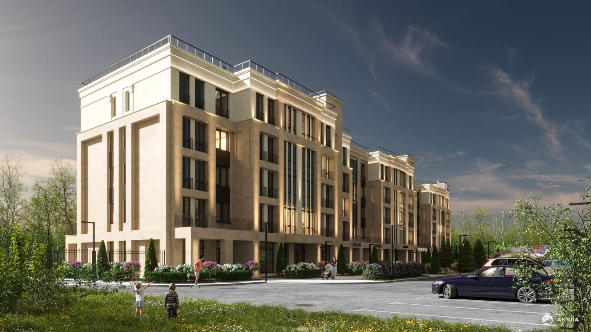 На первом этаже комплекса расположены коммерческие помещения, где разместится инфраструктура для жителей дома – фитнес-студия, коворкинг, салон красоты, пекарня, магазин и пункт выдачи интернет-заказов. Также на территории комплекса расположится детское дошкольное учреждение с площадкой для игр.