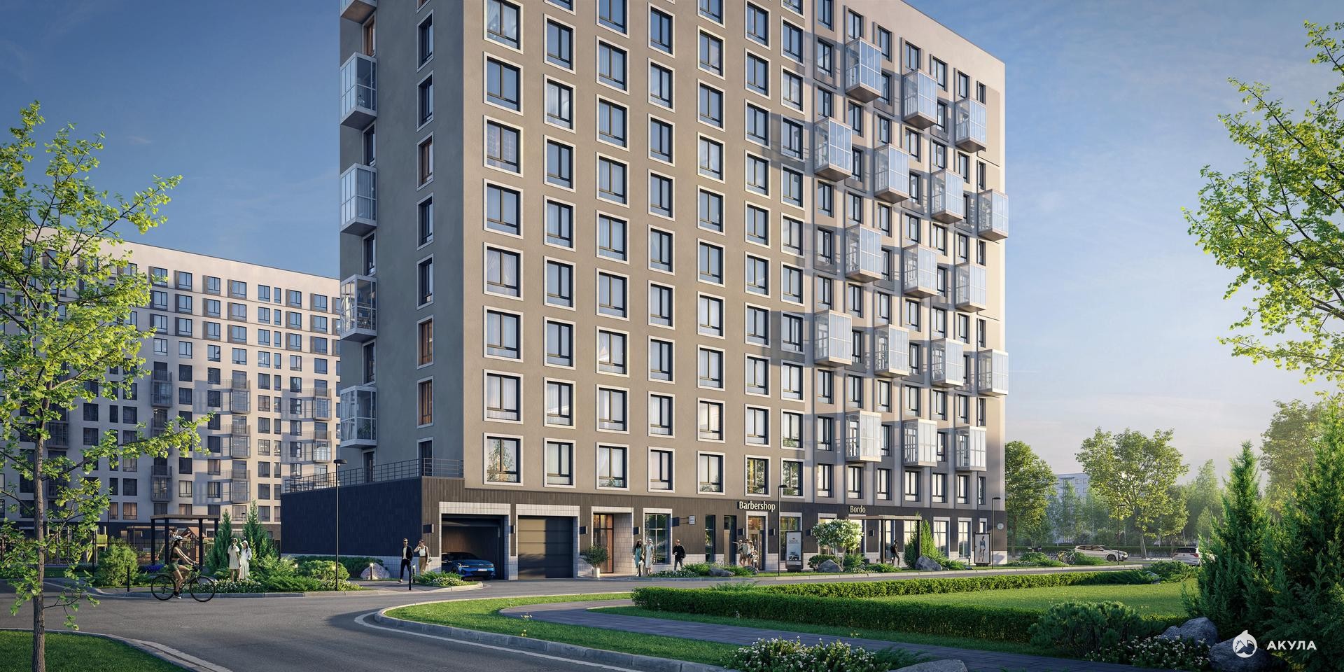 Камерные монолитно-кирпичные дома высотой до 12 этажей с панорамным остеклением балконов и первых этажей.