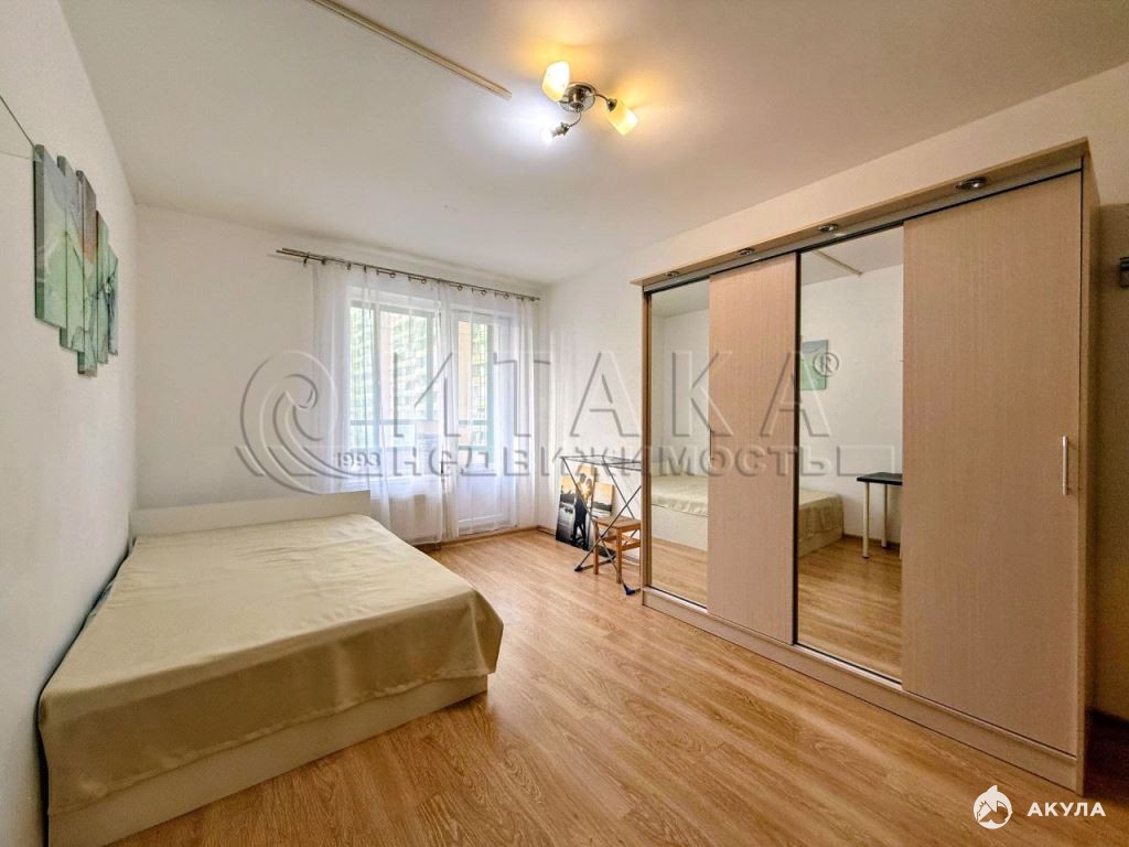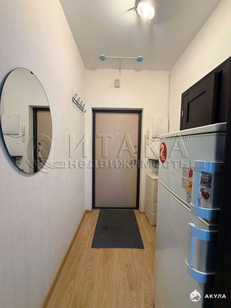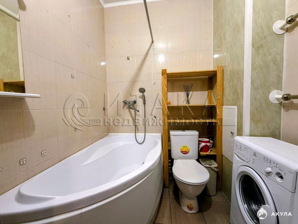 В санузле - ванна и стиральная машина, жилая часть отделена дверью. Шкаф-купе, кровать и другие предметы обстановки, включая бытовую технику, остаются покупателю.