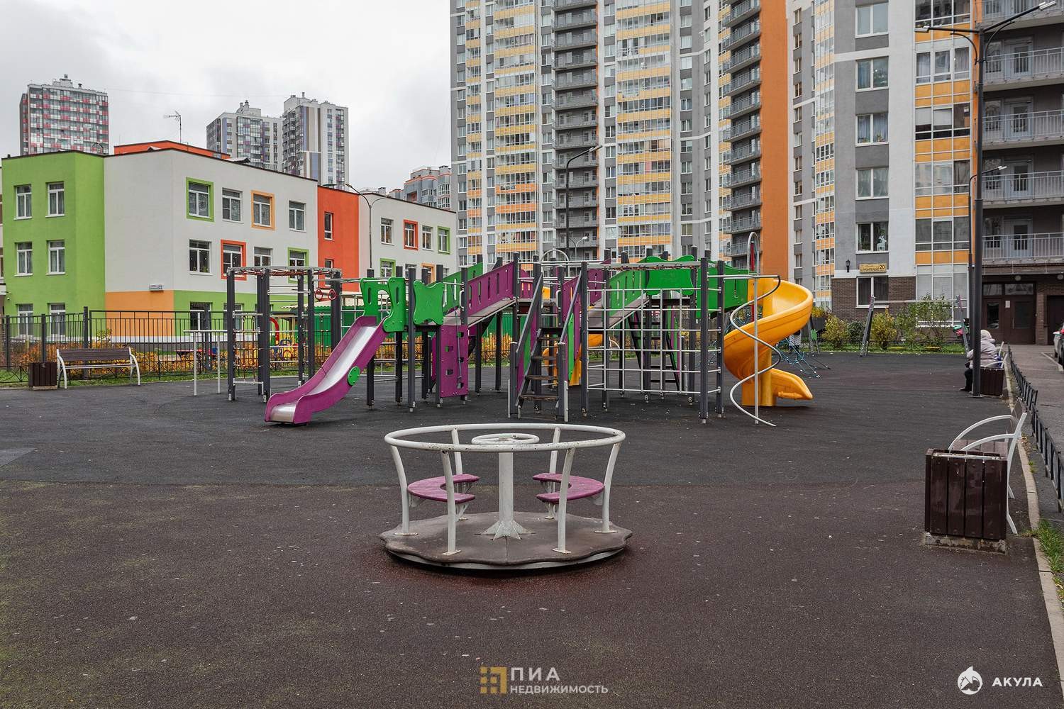 На территории двора спортивные площадки, зоны отдыха, парковки для велосипедов. Нет проблем с парковкой. Здесь безопасно и уютно. В пешей доступности несколько детских садов и школа, сетевые продуктовые магазины, аптеки, а также парк Новый Оккервиль.