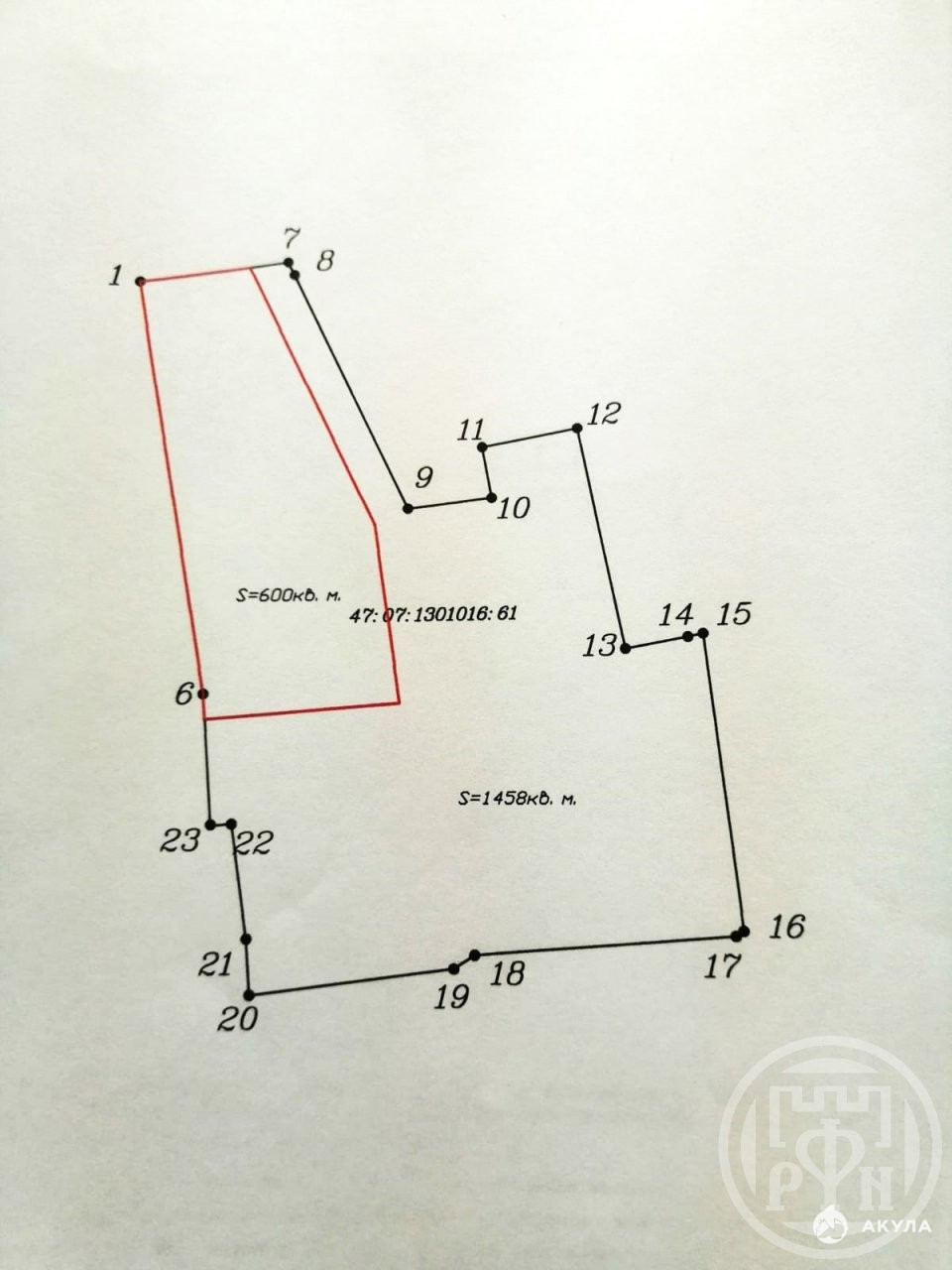 - Площадь участка