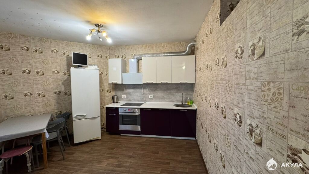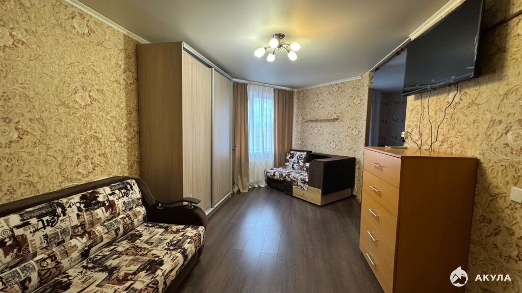 Общая площадь 40.0 кв.м. В квартире есть все самое необходимое для жизни: раскладной диван , стиральная машина, кухонный стол, большой шкаф в комнате.