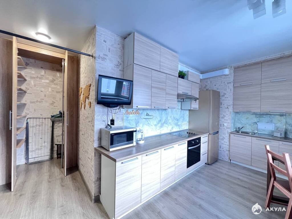 Квартира оборудована всем необходимым, при этом пространство не захламлено мебелью.