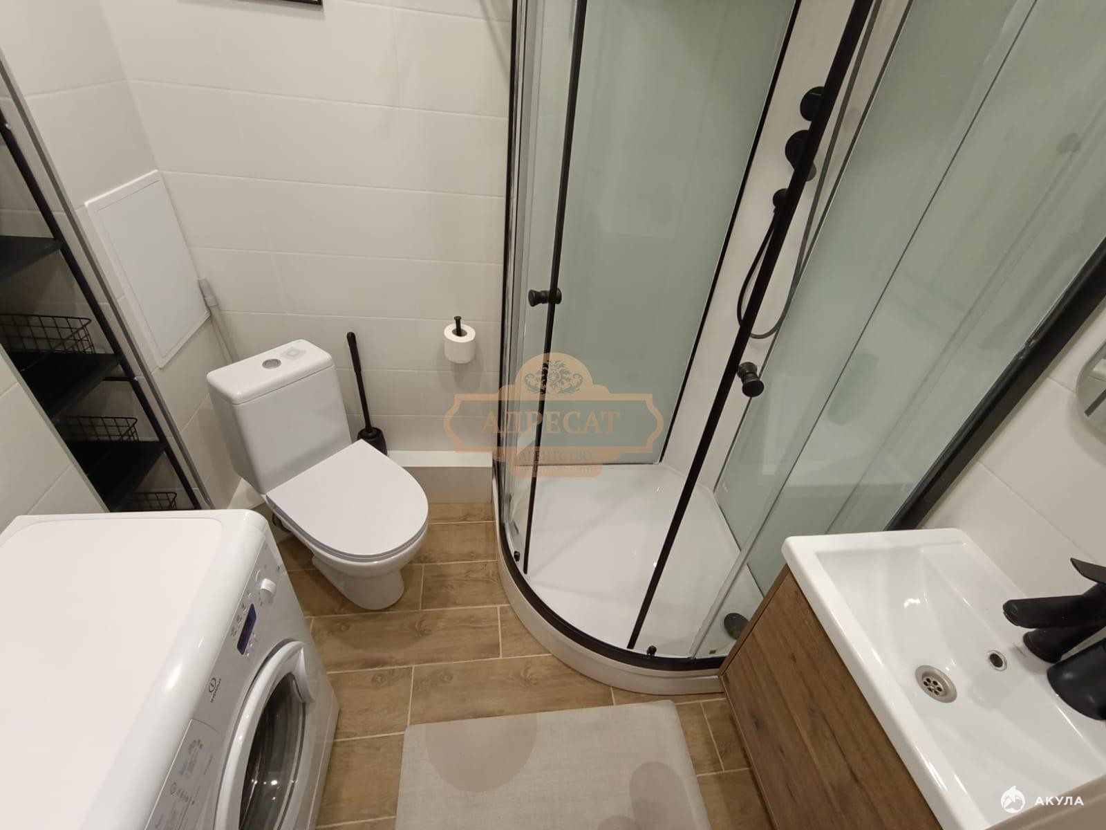 В квартире сделан евроремонт, все новое, никто не жил, сдается впервые. Есть все необходимое для жизни: двуспальная кровать, кресло, торшер, стеллаж, для хранения – комод, кухонный стол с креслами, кухонный гарнитур с техникой – варочная панель, холодильник, микроволновая печь, чайник, тостер, посуда для приготовления (кастрюли, сковородки), посуда и столовые приборы для приема пищи. В санузле – душевая кабина, тумба с 2 ящиками+раковина, зеркало с подсветкой, унитаз, стеллаж с полками, стиральная машина. В коридоре трехстворчатый шкаф с полками и отделением для развешивания одежды (+вешалки- плечики и вешалки для юбок или брюк), Настенная вешалка для одежды и обувница, зеркало.
