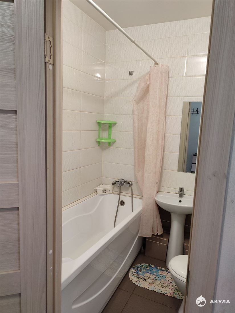 Квартира полностью меблирована и оснащена всем необходимым: кухня с электрической плитой, холодильником, обеденнои зонои и посудои. В ваннои комнате установлена стиральная машина. В комнате двуспальний диван для комфортного сна, шкаф для одежды, тумбочка, стол, стулья. Квартира очень светлая и уютная.