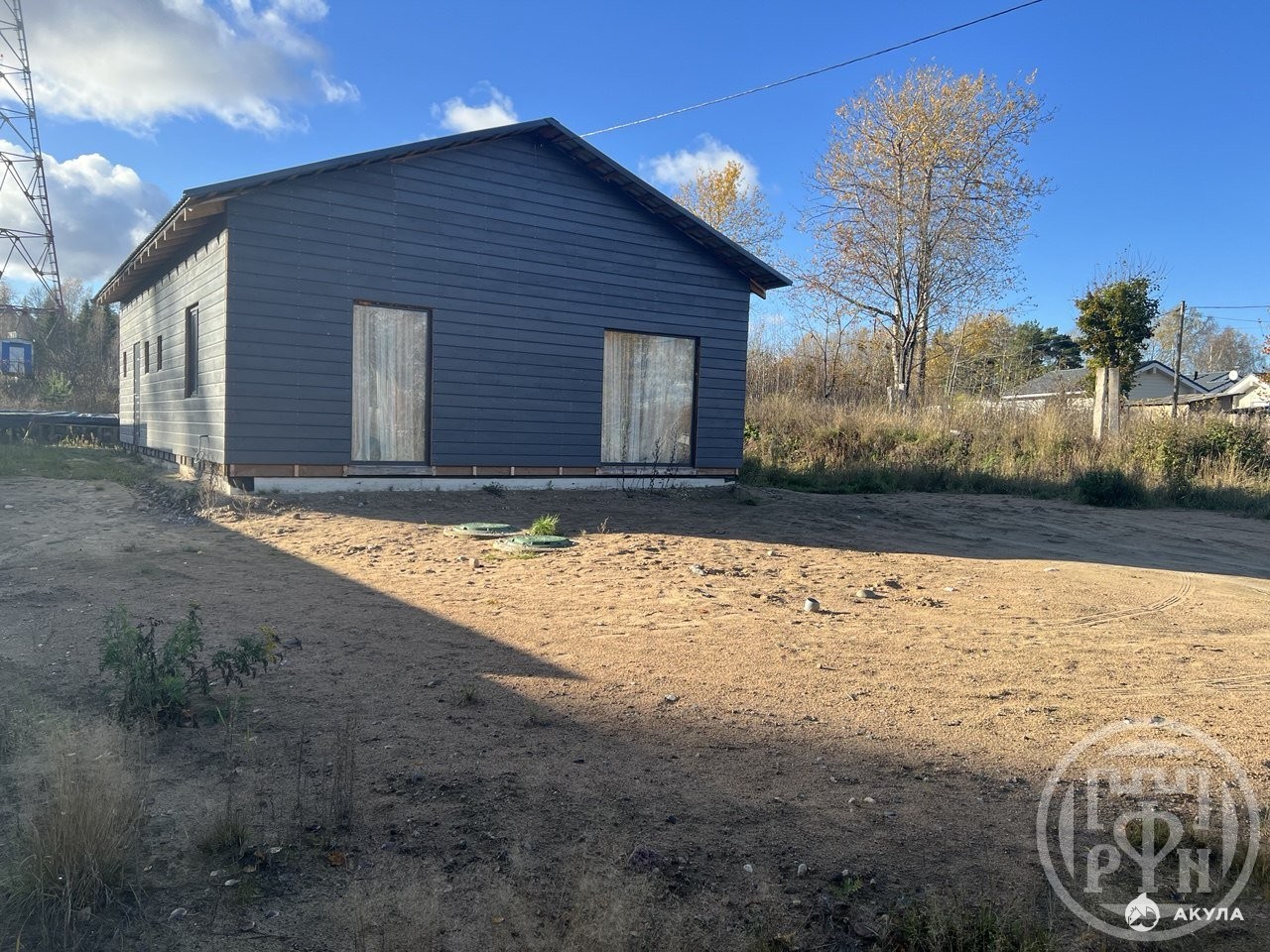 Дом был построен в   2023 году по индивидуальному проекту в современном стиле на монолитном фундаменте. На этаже располагается просторная кухня-гостиная, две спальни, сауна, ванная комната и техническое помещение.