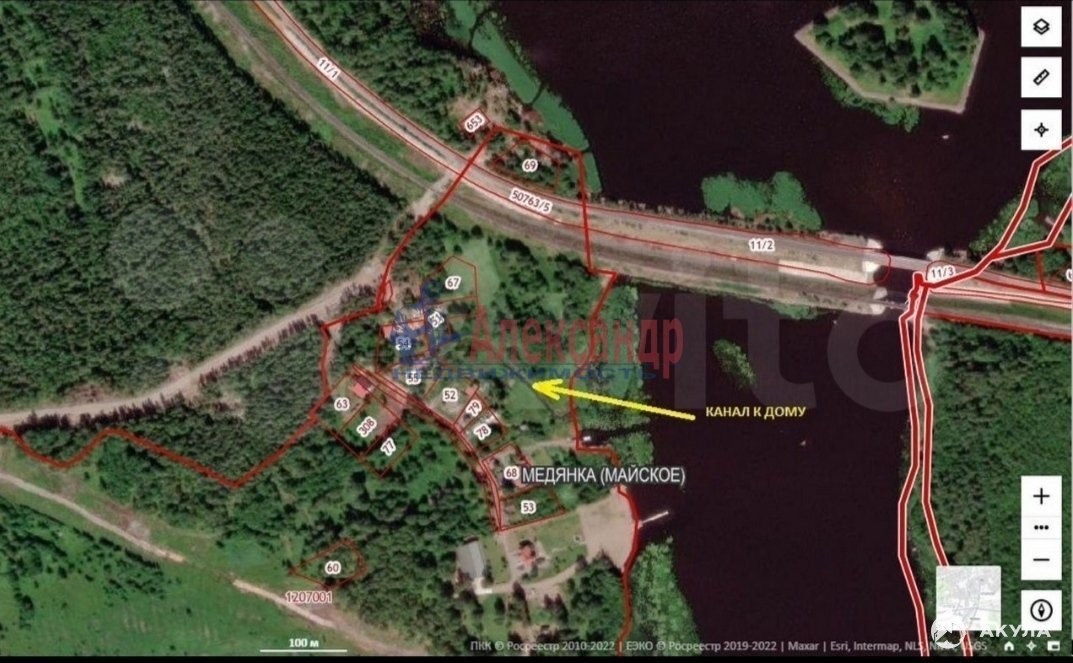 Проведена дорога для спуска лодок в канал, а также на участке есть финский колодец.