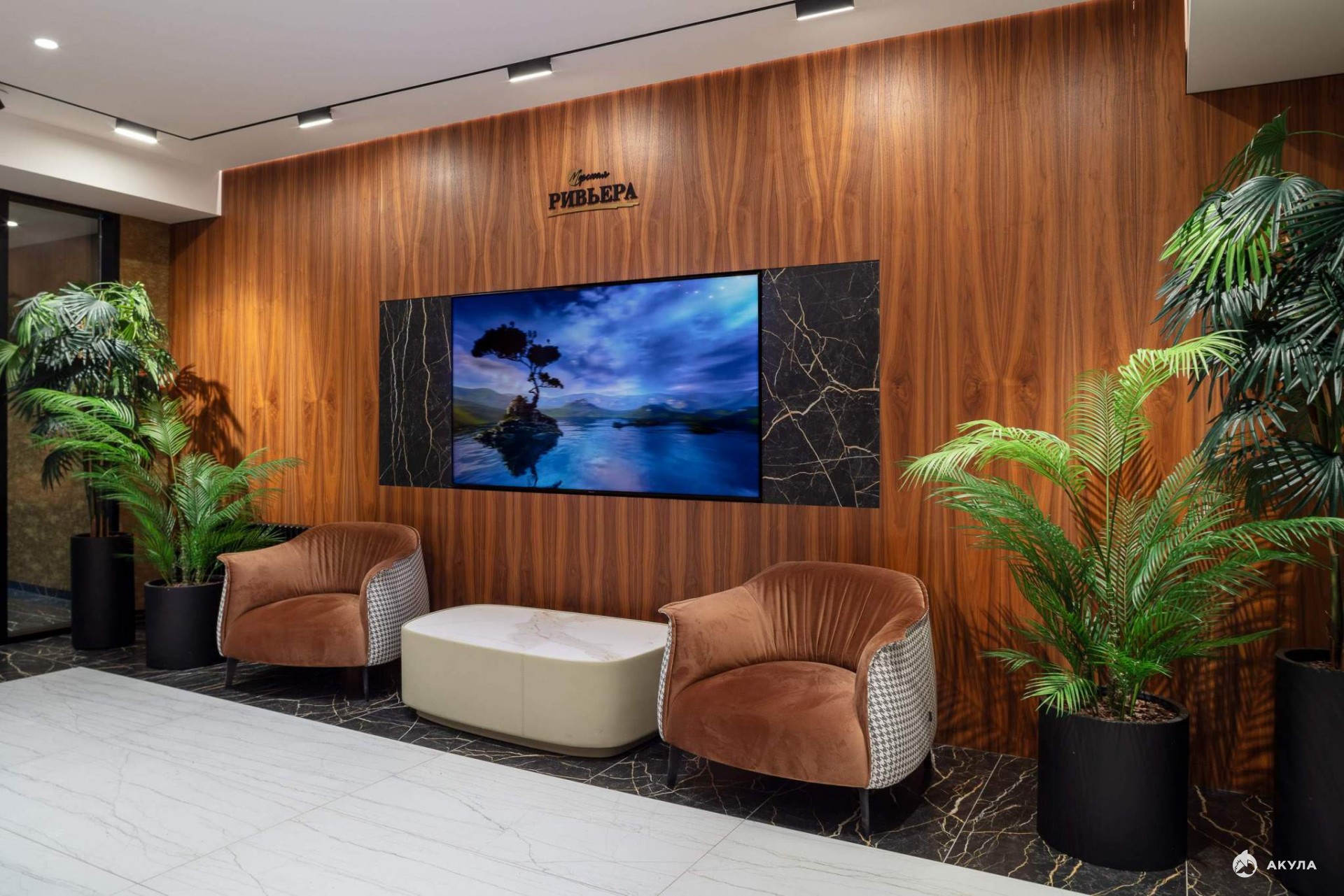 Попадать в свои апартаменты вы будете через элегантные гранд-лобби и холлы. Интерьеры и отделочные материалы мы тщательно подбирали, чтобы объединить пространство окружающей природы и пространство дома. Каждая деталь - от пола до потолка, от светильников до дверных ручек - призвана подчеркивать статус вашего дома.